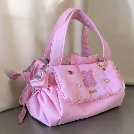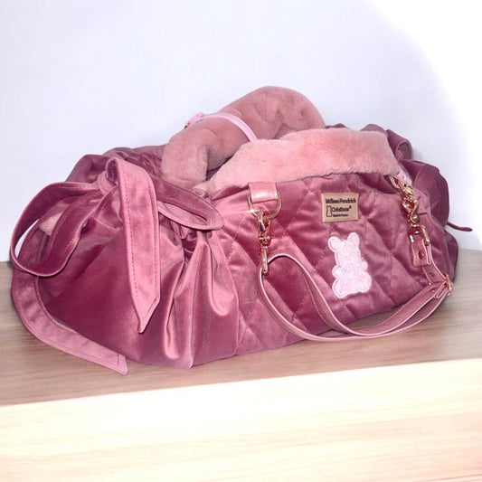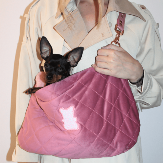 Stella dog carrier bag in quilted pink velvet