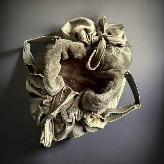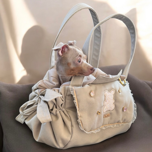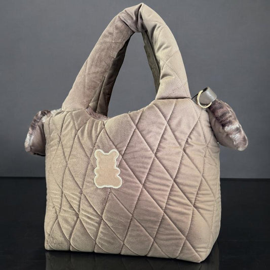Beige quilted velvet dog carrier bag