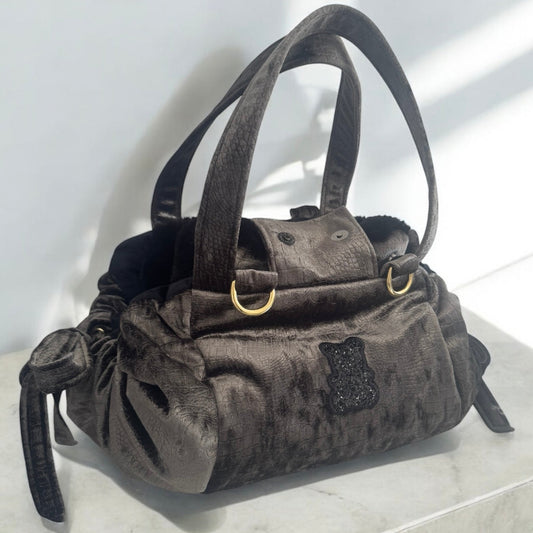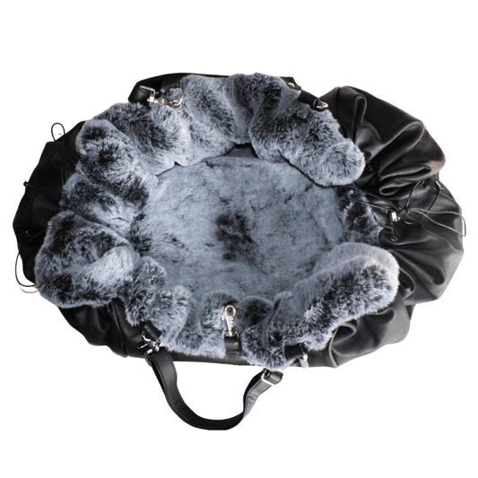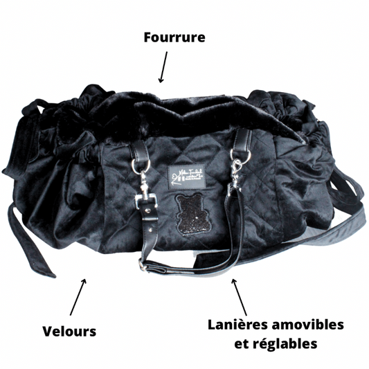 Black quilted velvet dog carrier bag